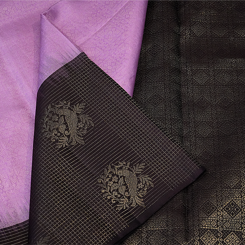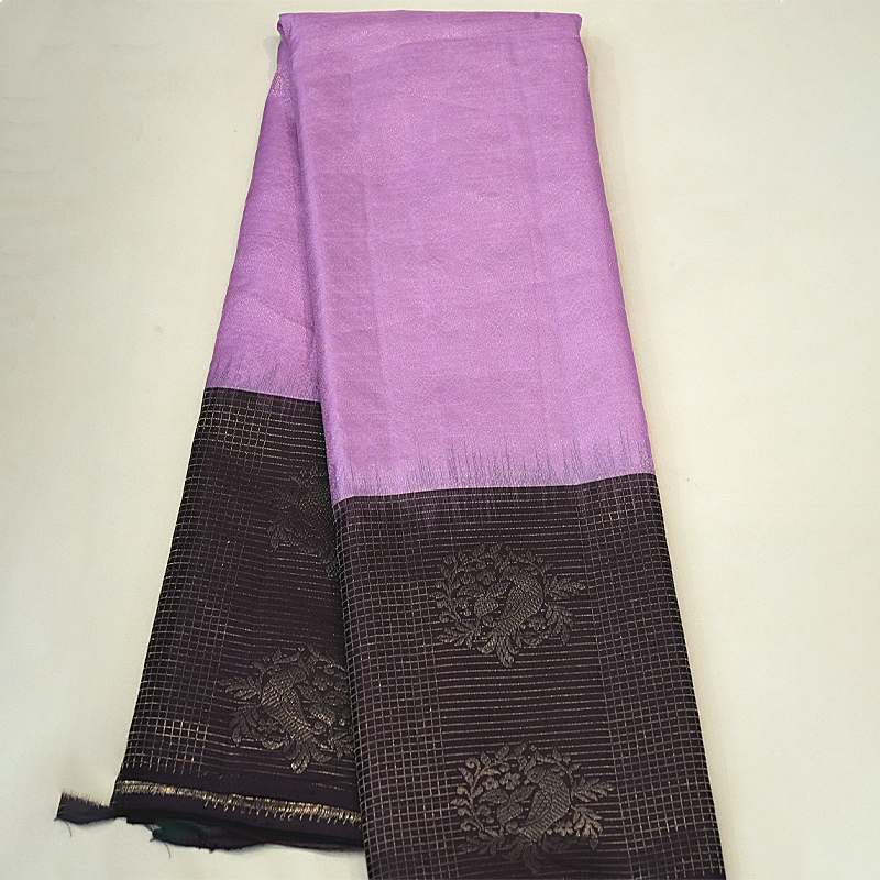 Tissue Pure Silk Saree Grey And Black With Motives In Border
