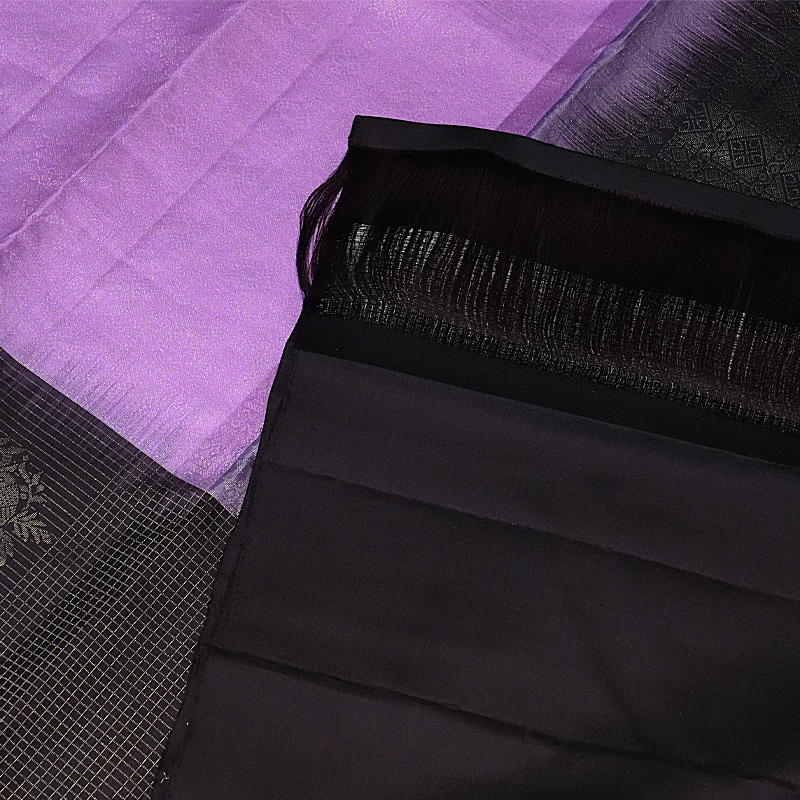 Tissue pure silk saree black and Ash with motives
